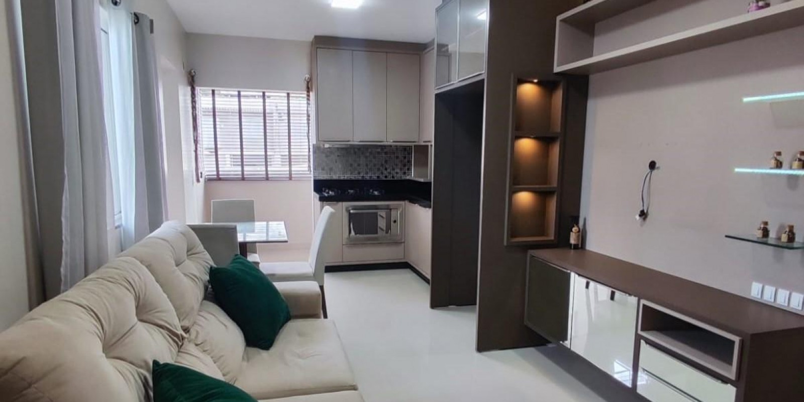 - Sala e cozinha com living integrado;